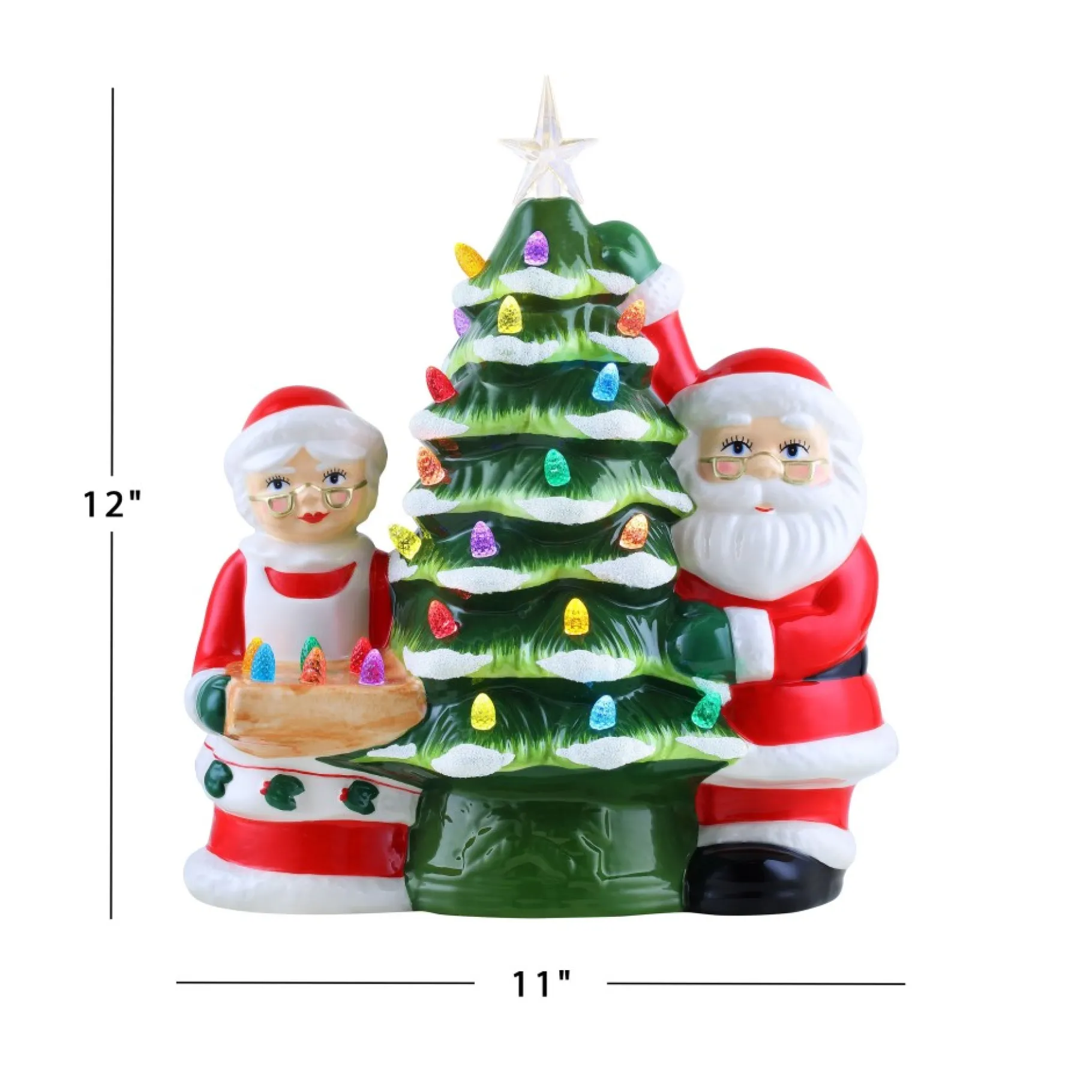 Bring Back Memories From Christmas’ Past With The Vintage-Inspired Santa And Mrs. Claus Deck The Halls Tree By Mr. Christmas. Santa And Mrs. Claus Are Decorating Their Tree With Multi-Colored Lights. Led Lights Radiate Through The Faceted Bulbs, And A Bright Yellow Star Illuminates The Top Of The 12″ Tree With A Shiny Polished Green Finish. A Four-Hour Timer Saves Battery Life And Makes The Tree A Perfect Nightlight. Operates On 3 X “Aa” Batteries (Not Included), No Cords To Worry About, And Easy Setup. This Tree Looks Great On The Mantle, Side Table, Bedroom, Bookshelf, Or Anywhere That Needs A Festive Touch. The Santa And Mrs. Claus Deck The Halls Tree Makes The Perfect Gift For Your Loved Ones Or Yourself, Especially If You Can’T Make It Home For The Holidays.
