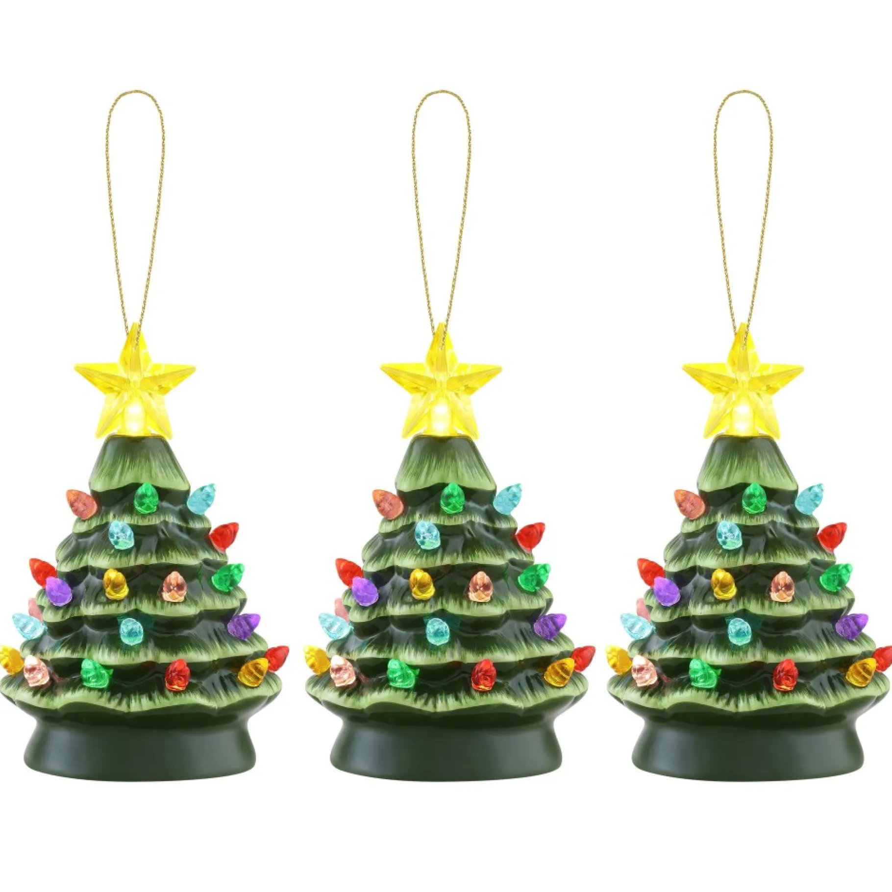 Discount Set Of 3 Nostalgic Ceramic Tree Ornaments – Green Ornaments
