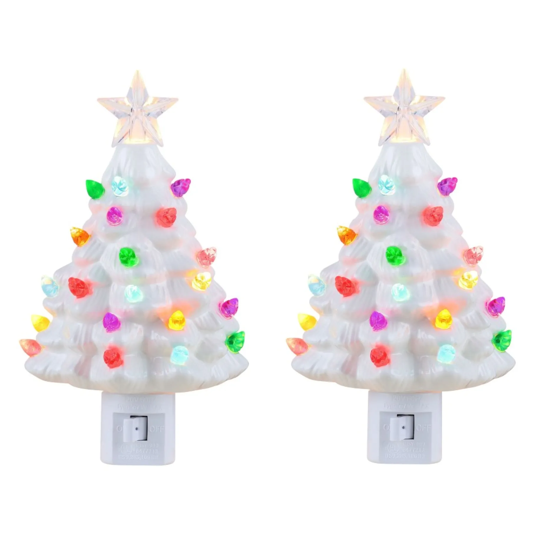 Make Your Holidays A Little Brighter With The Set Of 2 White Nostalgic Tree Nightlights By Mr. Christmas. This Classic Christmas Decoration Has Been A Focal Point Of Households For Generations, Now Available With Modern Technology. Led Lights Radiate Through The Faceted Bulbs, And A Bright Yellow Star Illuminates The Top Of Each Miniature Tree With A Polished White Finish. These Trees Look Great In Your Bedroom, Living Room, Or Any Room That Needs A Festive Touch.
