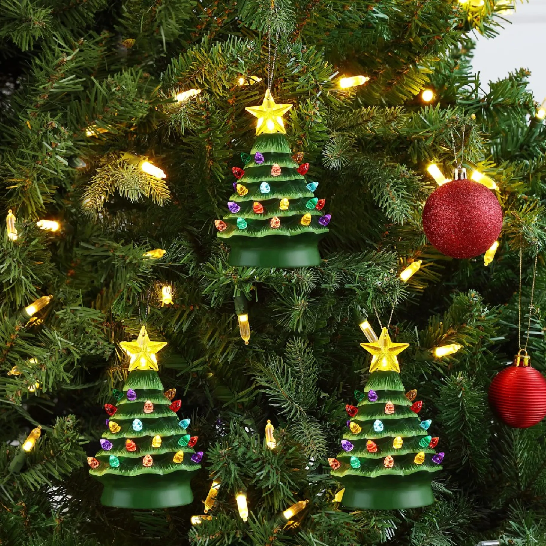 Discount Set Of 3 Nostalgic Ceramic Tree Ornaments - Green Ornaments