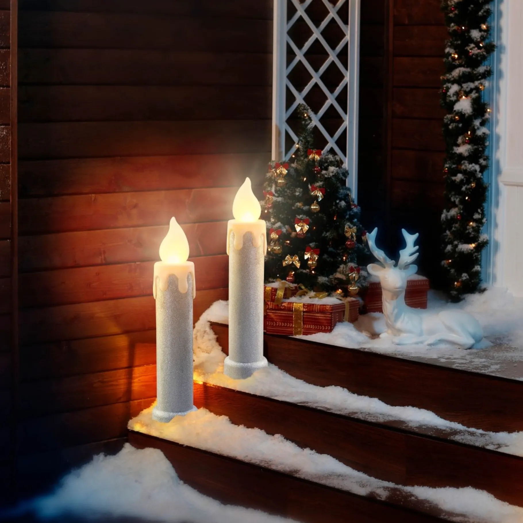 Fashion 24" Set Of 2 Blow Mold Candles - Silver Blow Molds